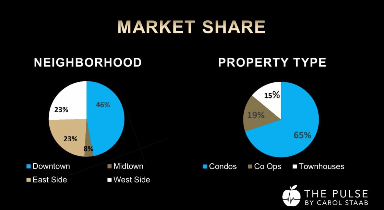 #4 - Neighborhood Dominance: Downtown continues to lead with 46% of the market share, with the Upper East Side and Upper West Side each securing 23%.
