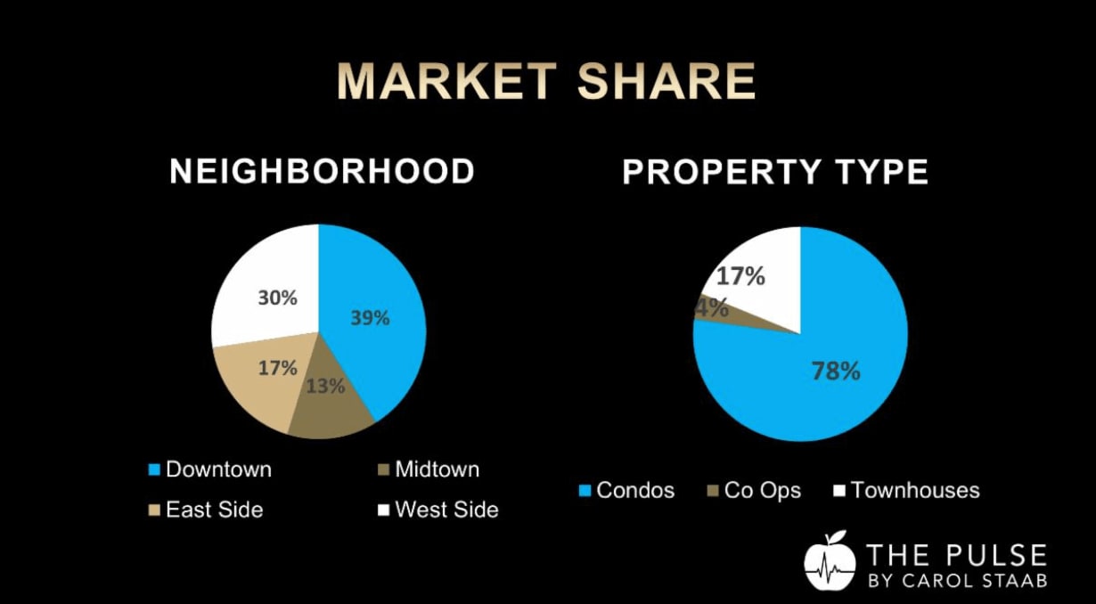 Neighborhood Trends: Downtown continued its reign as the market leader with a 39% share, closely followed by the West Side's 30%.