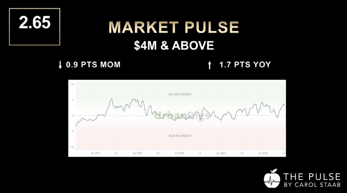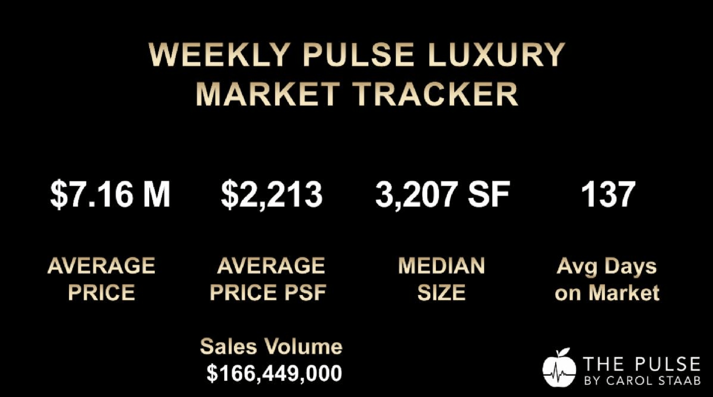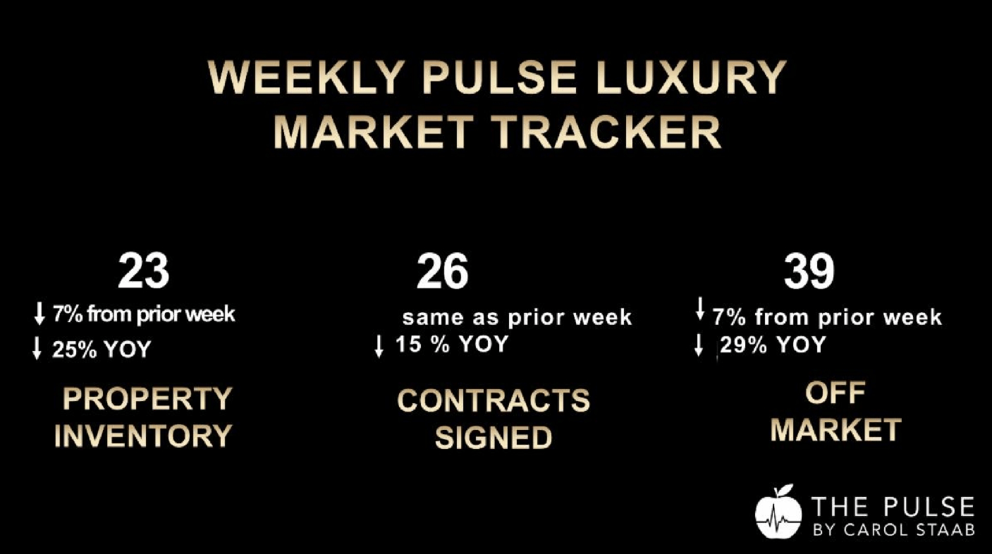 We’ve now seen 26 contracts signed in back-to-back weeks, well above the 20-per-week baseline that signals a healthy luxury market. This strength—paired with contract volume that’s 30% above the benchmark—tells a clear story: buyers are still transacting, but only for the right product at the right price. Meanwhile, quality inventory remains tight. New listings fell 21% last week and are down 25% over the past 30 days compared to the same time last year. With fewer standout homes hitting the market, sellers who launch now with strategic pricing and polished marketing are at an advantage.