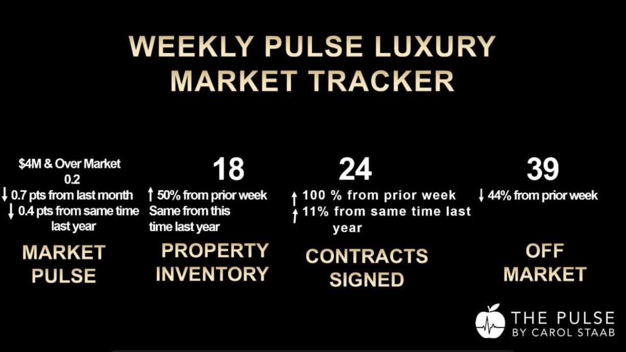 Welcome to this edition of the Pulse, where I, Carol Staab, provide you with in-depth analysis, insights, and advice on navigating the dynamic Manhattan luxury real estate market! Last week, luxury property contracts in Manhattan experienced an unexpected surge, climbing by 85% and marking a significant upswing in activity. Contracts this August are up by 11% compared to the same period last year. Despite a 50% increase in new listings last week, the numbers remain low, aligning with the seasonal trends of August, and are comparable to last year's figures for the same period.