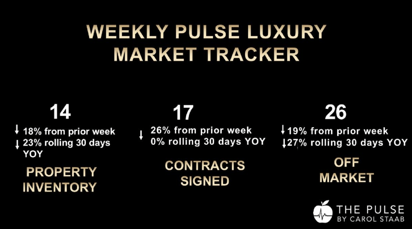- Off-Market Listings: 37 last week (↑ 54% WoW); 131 in last 30 days (↓ 3% YoY)
